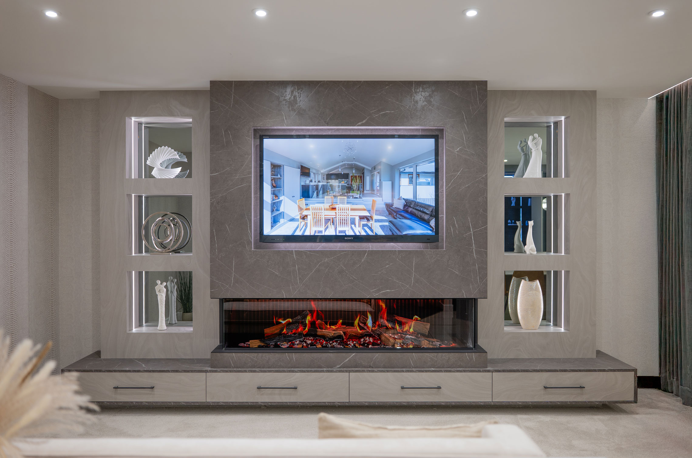 Fitted media walls are a little more complex then your freestanding options, as they are designed to use the available space and keep wiring hidden from view.