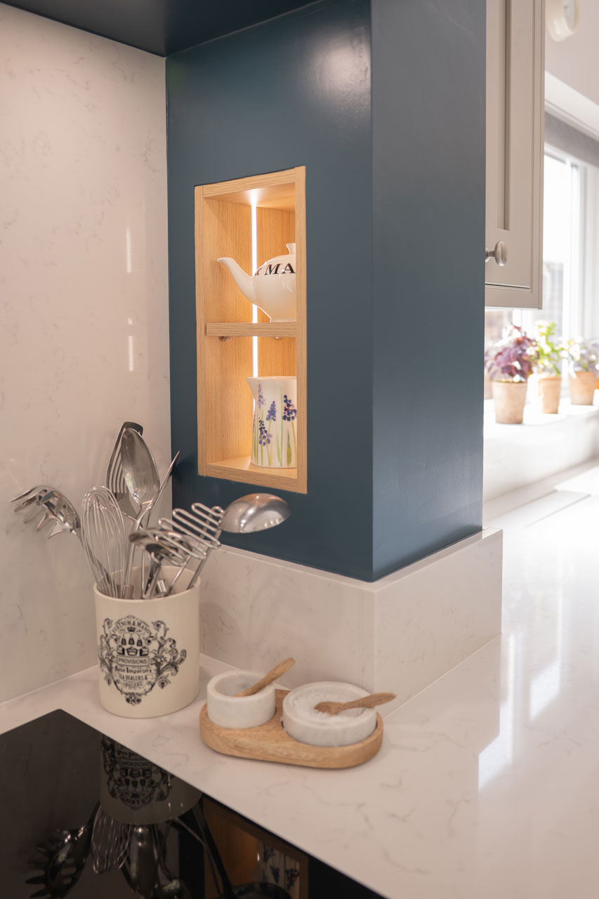 Lighting: Integrated LED Lighting was installed to illuminate key areas and add a warm, inviting ambiance to the space. Lighting was also fitted within the worktop for that subtle ambient lighting in the evenings.